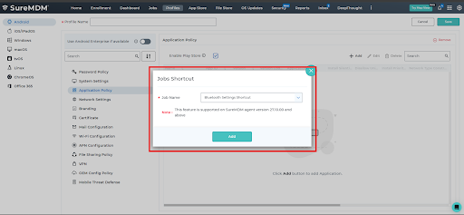 By using a Run Script job combined with a job shortcut in an Application Policy, administrators can safely provide access to Android Bluetooth Settings without fully unlocking system settings on managed devices.