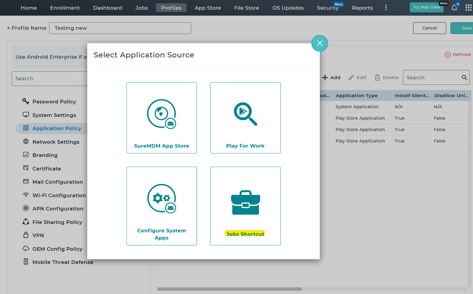 Step 2: Create a Job Shortcut Using Application Policy