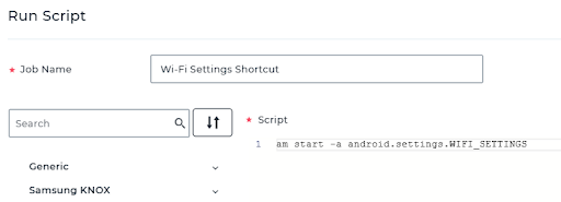 By using a Run Script job combined with a job shortcut in an Application Policy, administrators can safely provide access to Android Wi-Fi Settings without fully unlocking system settings on managed devices.