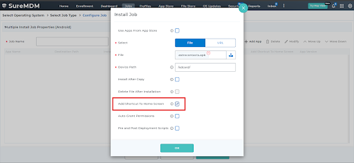 This article explains how to create an Install Application job in SureMDM to install an application and automatically add its shortcut to the Home Screen of enrolled Android devices. This helps ensure faster access to business-critical applications for end users.