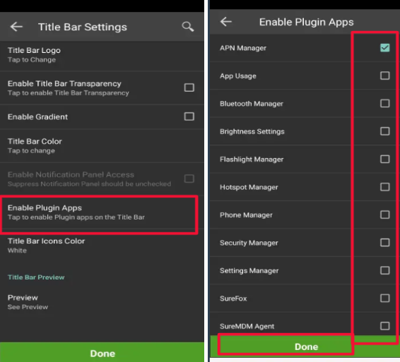 5. How to allow Android SureLock Plugin Apps on the title bar setting