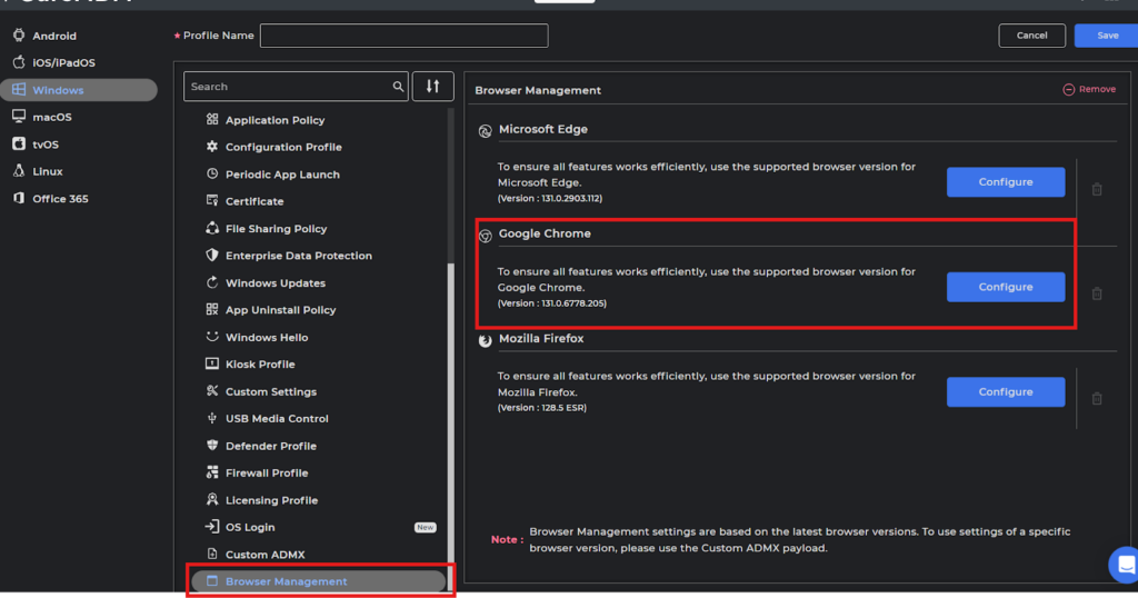 - Look for Browser Management and tap on Configure for Google Chrome.