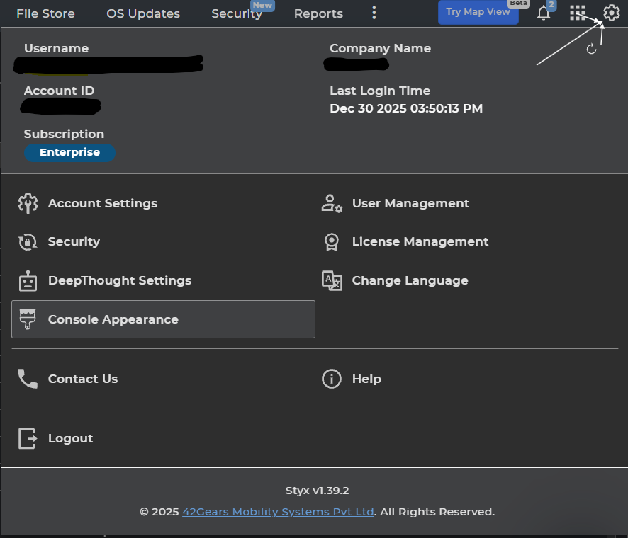 - Click on the Settings option and Navigate to Console Appearance as mentioned on screenshot below: