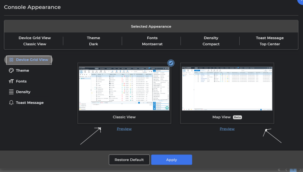 The purpose of this knowledge article is to provide a guide on how to change the Device Grid View of the console under Console Appearance