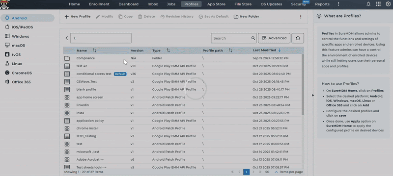 - Navigate to Profiles in the SureMDM console.