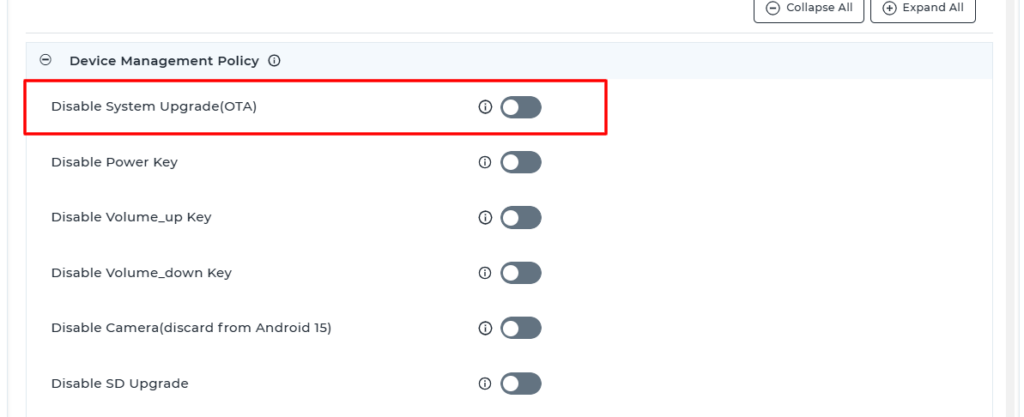Step 6: Click on “Expand All” and search for “Disable System Upgrade (OTA)” and enable it.