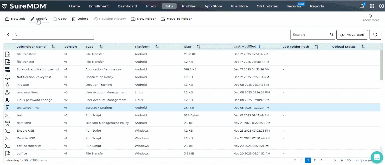 - Navigate to Jobs and create a new SureLock Job, or edit an existing one.