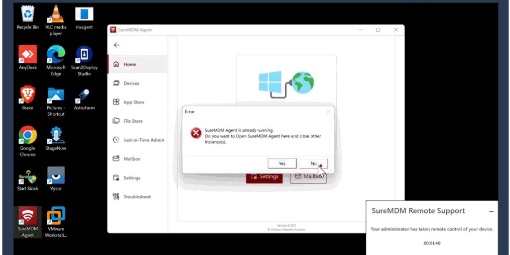 Once the App Store is unlocked by IT using the password, employees can install or uninstall applications as required. Automatic application updates will continue without interruption. The SureMDM App Store will automatically re-lock after the IT administrator closes the SureMDM Agent, ensuring continued control and security.
