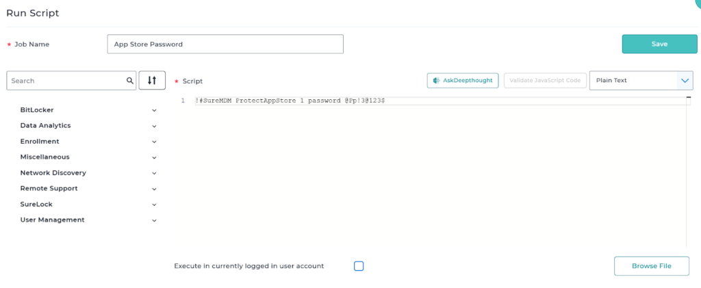 This KB article provides detailed steps on how to enable a password for the SureMDM App Store on Windows devices. Currently, employees can install or uninstall any application from the SureMDM App Store, which can lead to unnecessary installations, performance degradation, and storage constraints. Additionally, as multiple departments require different applications, creating and maintaining separate profiles for each project becomes complex and difficult to manage.