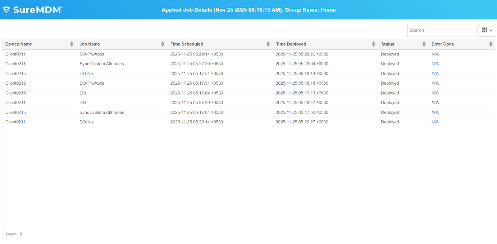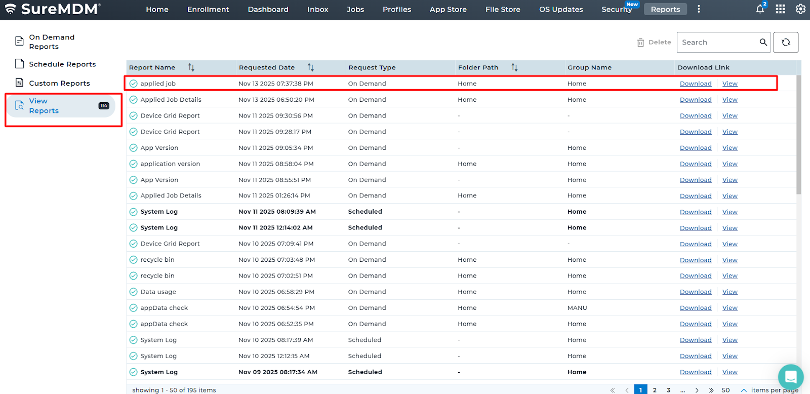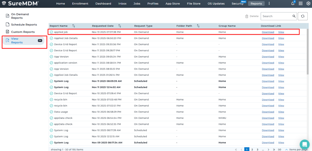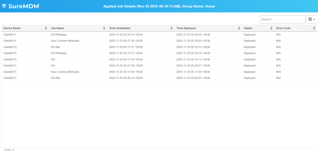 This article guides users on generating and viewing SureMDM job deployment reports. These reports fetch device name, job name, schedule, deployment time, status, and error codes, which help identify job failures and their causes, enabling administrators to monitor device activity and manage job operations effectively across the device fleet.