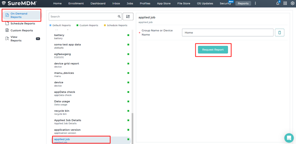 4. Navigate to On-Demand Reports and look for the job name Applied Job Details > click Request Report.
