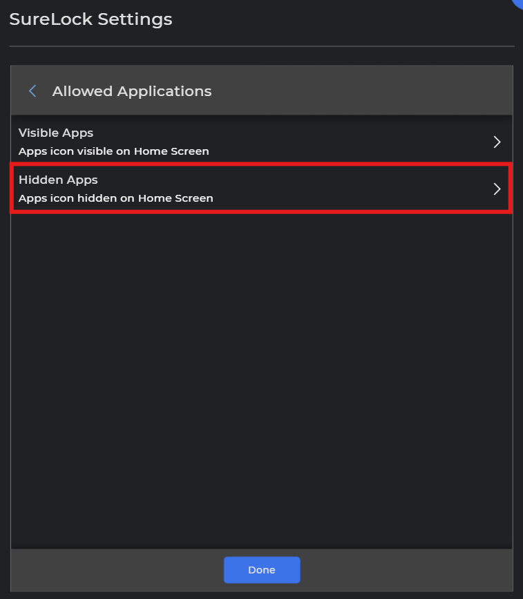 Applications added under Hidden Apps will continue running in the background but will not be visible or accessible from the SureLock home screen.