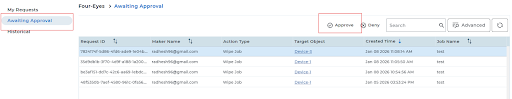 6. Under this tab, you can approve the wipe request for the respective device. Post which wipe job will be successfully deployed on the device:
