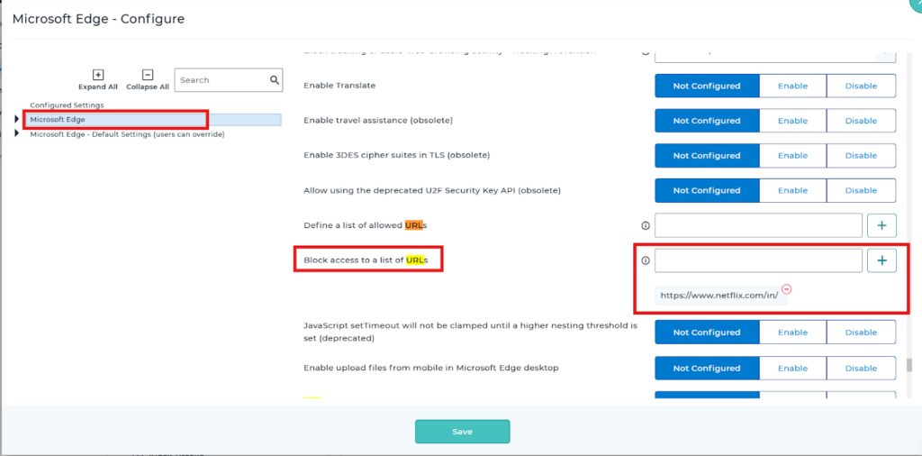 - Under Browser Management, click Configure for Microsoft Edge.