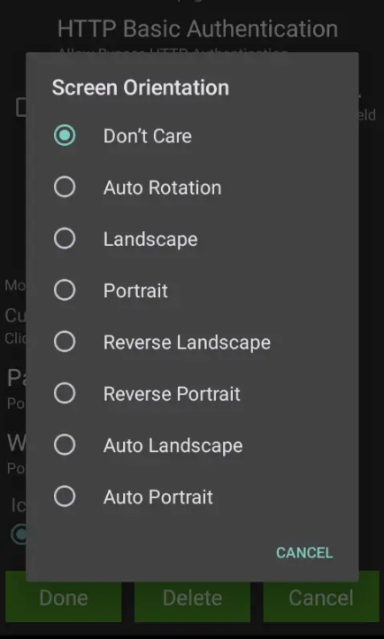 4:After configuring the URL please scroll down to Screen Orientation and you will find the different screen orientation to choose from.