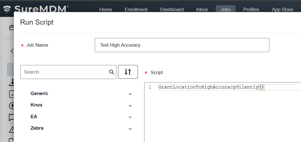 - Access to the SureMDM Console with permissions to create and deploy RunScript jobs.