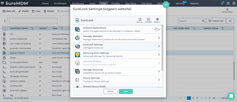 - Navigate to Jobs and create a new SureLock Job, or edit an existing one.