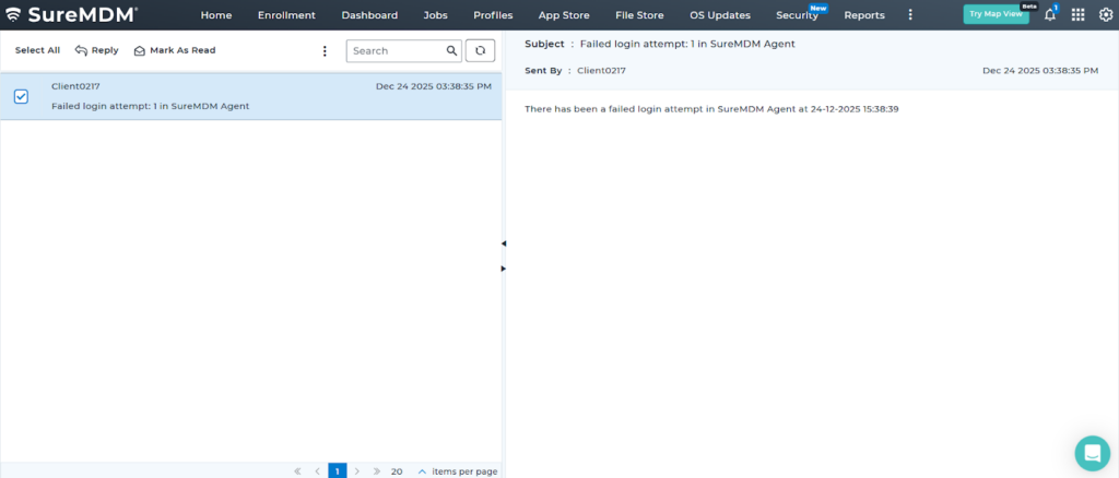 - Enable the option Send mail to SureMDM (Notify to SureMDM on failed login attempt).