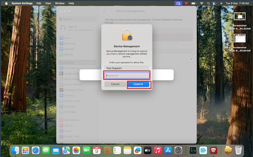 Step 4:- To unenroll from SureMDM, enter the device password when prompted. After that, the profile and restrictions can be removed from the device.