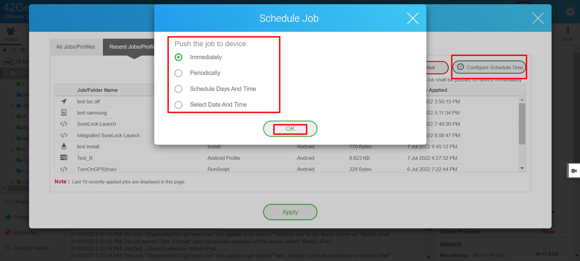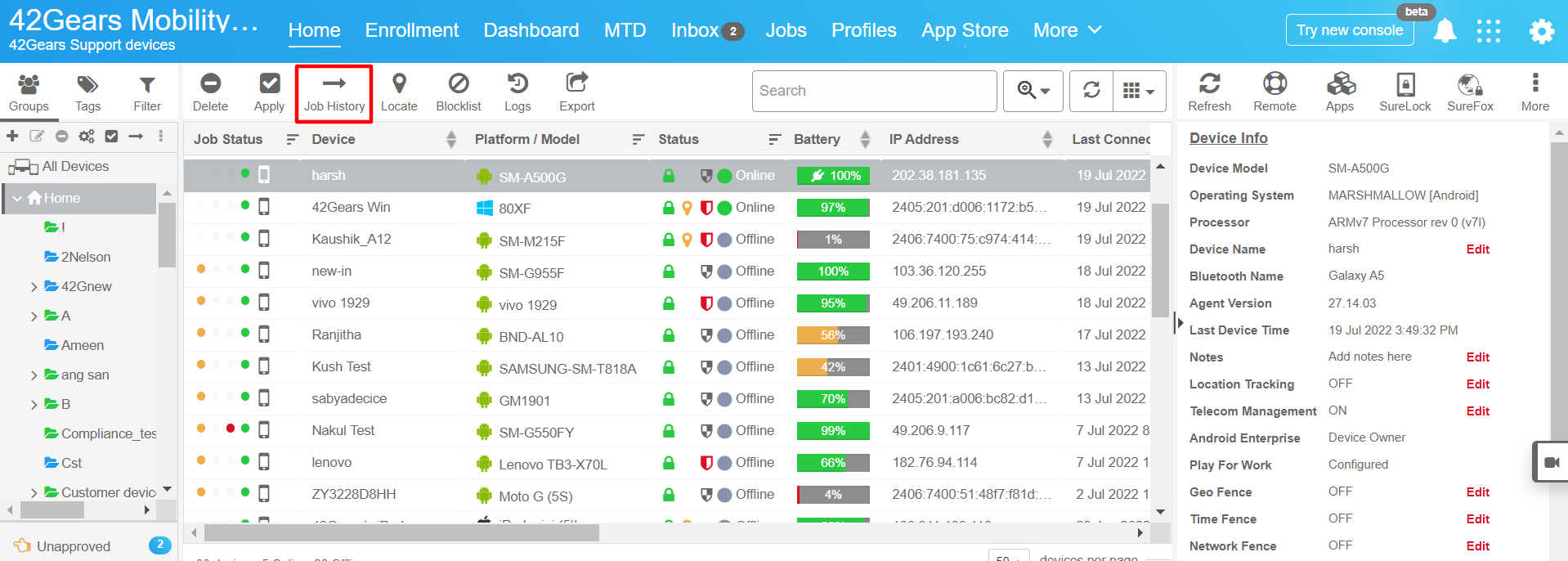 The purpose of this knowledge article is to provide a guide on how to use or view a recent job in the SureMDM Console.