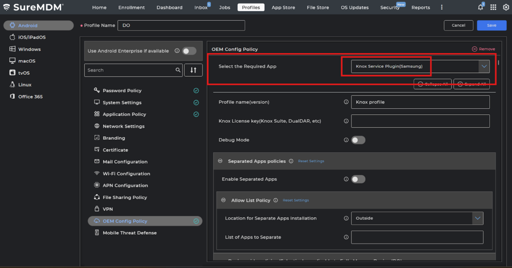 Save the profiles and deploy it to the device. Based on the above configuration, notifications from all applications will be blocked except for the apps specified in the allowlist.